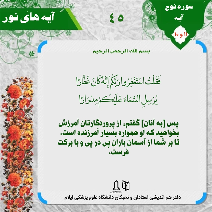 پس [به آنان] گفتم: از پروردگارتان آمرزش بخواهید که او همواره بسیار آمرزنده است. (۱۰)